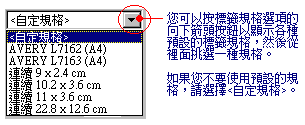 選用預設的標籤規格,則CBASE5視窗版會為您輸入固定的規格值,並且不