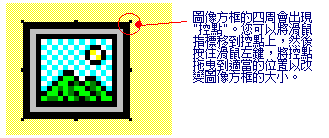 如果您的資料檔中有「圖檔」型態的資料欄位,您可以使用滑鼠拖曳的方法改變圖像方框的大小。
