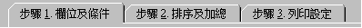的「設定步驟頁」設定報表的內容:(請參考下圖及相關說明)