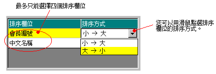 排序的欄位。或者按向左箭頭的[移出]按鈕移出排序欄位。